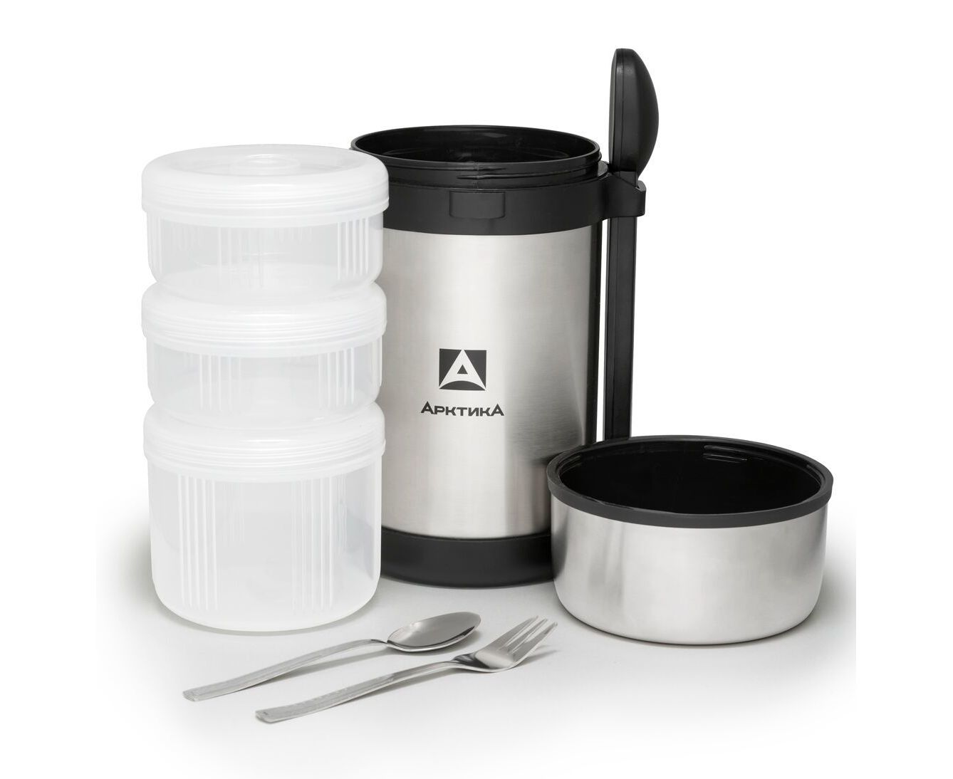 Комплектация: Контейнеры для еды 3шт., приборы (вилка, ложка)