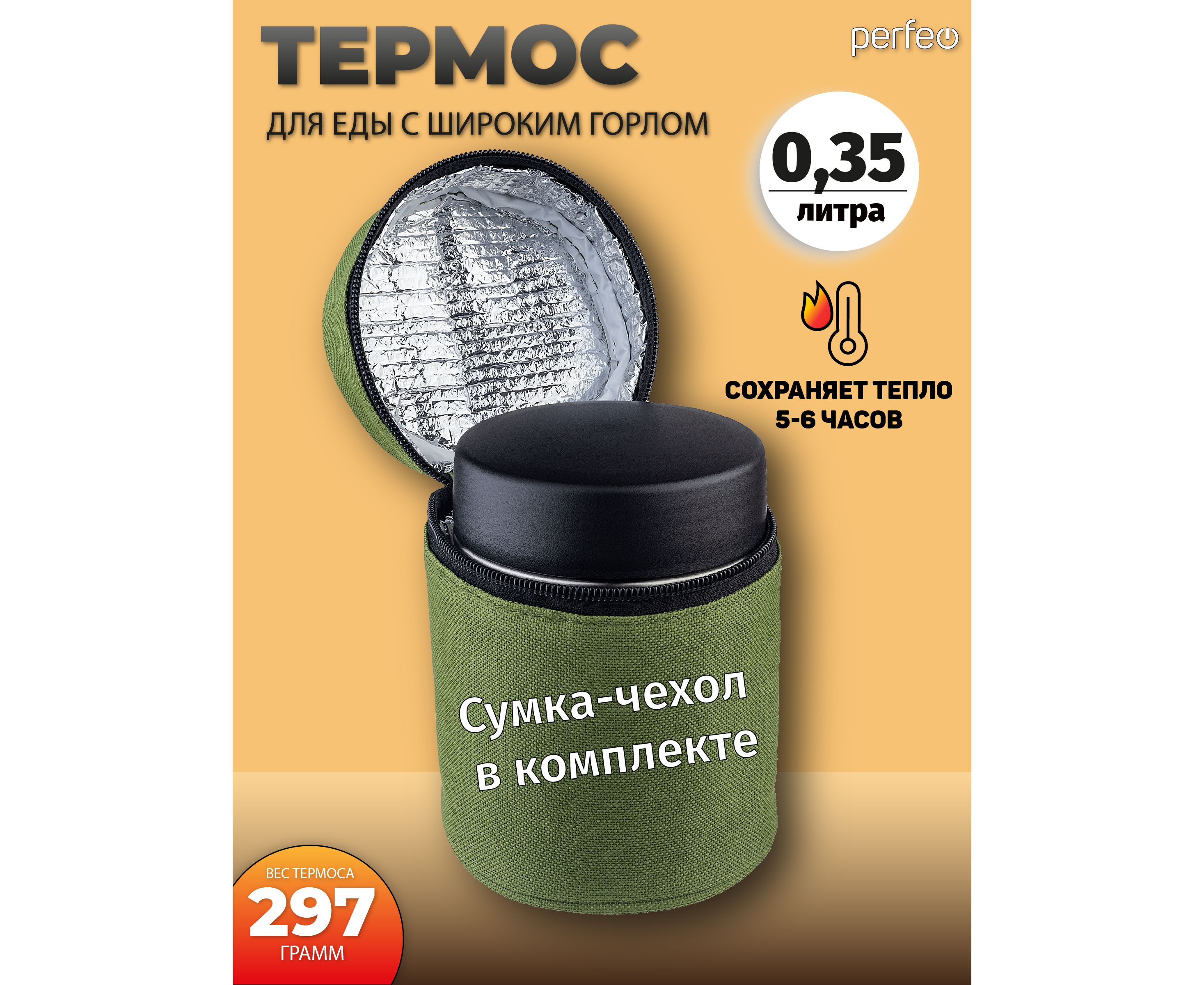 Термос для еды PERFEO с широким горлом, сумкой, объем 0,35 л., нержавеющая сталь (PF_E1380)