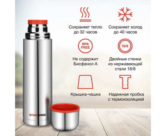 Термос Starwind 10-1000 серебристый/красный