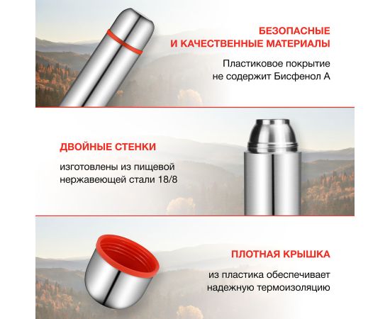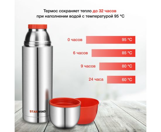 Термос Starwind 20-1000 серебристый/красный