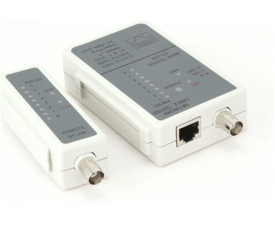 Тестер Cablexpert LAN для RJ-45, RG-58 NCT-1 помогает быстро определить неисправность в кабельной сети, протестировать кабель на обрыв, замыкание, проверить целостность экрана и правильность разводки кабеля.