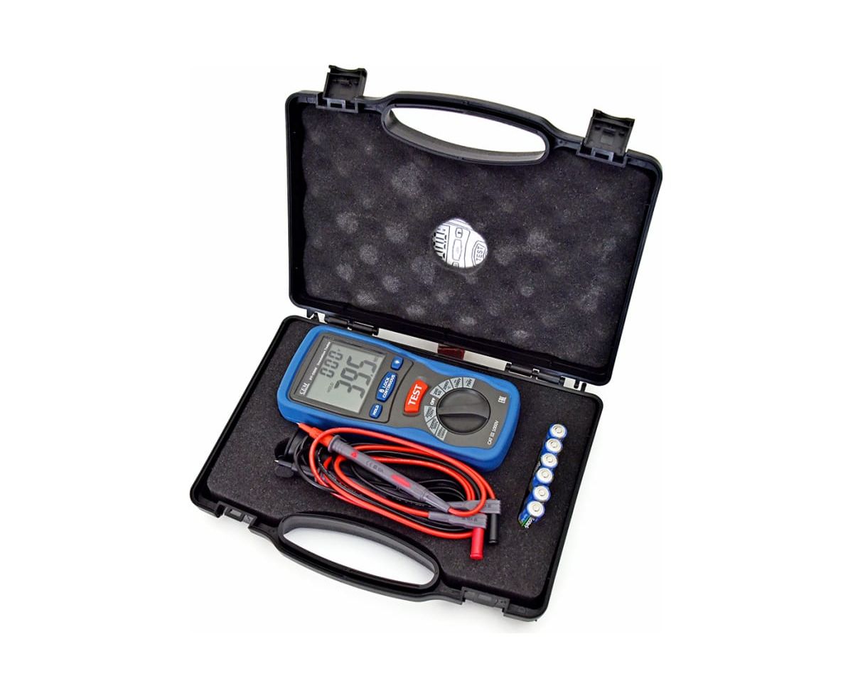 Цифровой тестер изоляции СЕМ DT-5500 480472 оснащен LCD-дисплеем большого размера с подсветкой, что обеспечивает комфортное считывание показаний. Специализированный инструмент позволяет быстро и точно определять сопротивление изоляции, напряжение постоянного и переменного тока. Модель питается от 6 батареек 1.5 В (тип АА).
