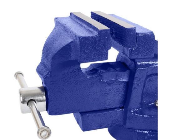 Слесарные поворотные тиски с наковальней KRAFT 150 мм KT 705210 имеют корпус, выполненный из чугуна повышенной прочности (SG). Поворотное основание позволяет удобно выполнять сложные работы. Также в конструкции предусмотрена небольшая наковальня для выполнения слесарных работ. Скользящая рукоятка для затягивания многократно увеличивает усилие сжатия и упрощает обработку деталей.