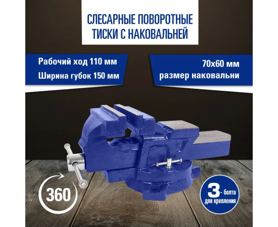 Тиски слесарные KRAFT KT 705210 поворотные с наковальней 150 мм
