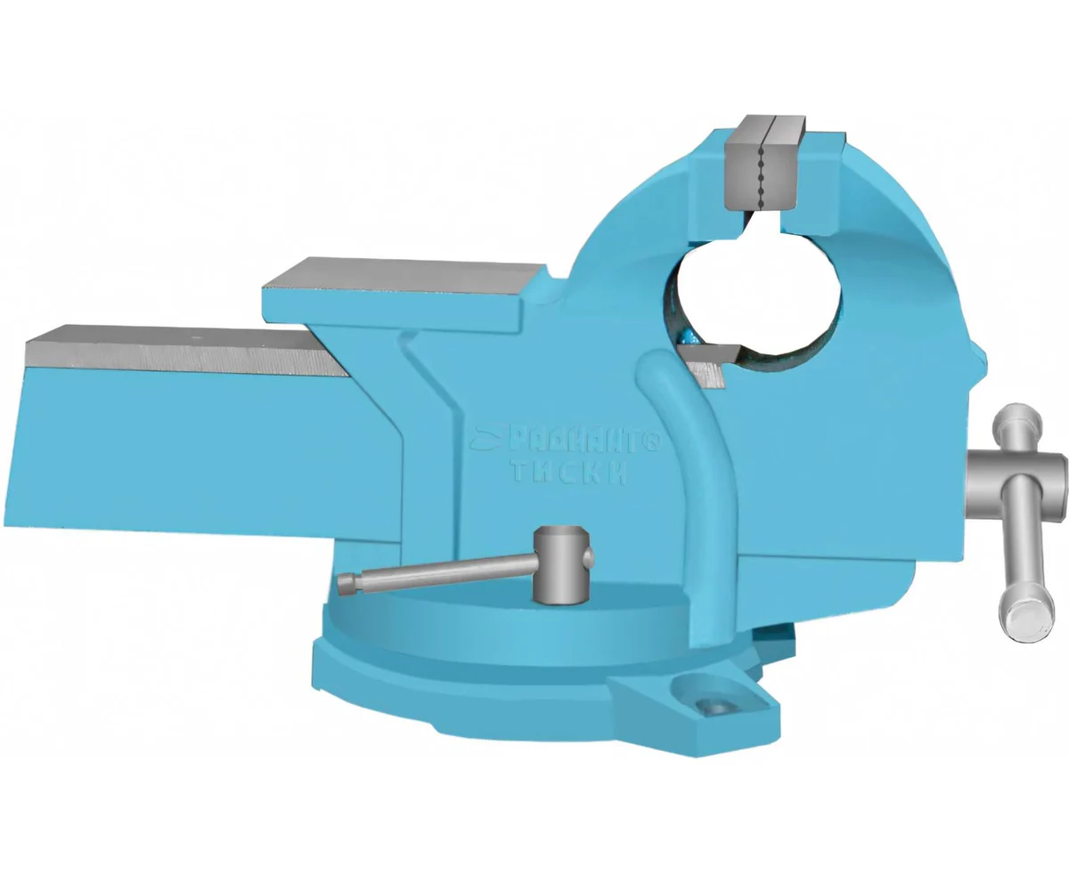 Слесарные тиски РАДИАНТ 125мм чугунные поворотные ТСЧ-125 48002предназначены для закрепления заготовок при выполнении слесарных операций. На корпусе имеется наковальня.