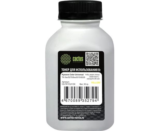 Тонер Cactus CS-TKYCUY-50 желтый флакон 50гр для принтера Kyocera Color Universal TK-5хх/5270/8xx/8115/8305