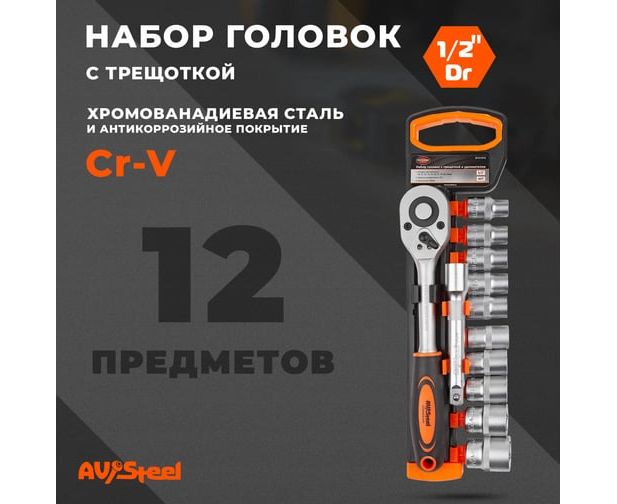 Торцевые головки Av Steel AV-011012 в компл.:12 предметов