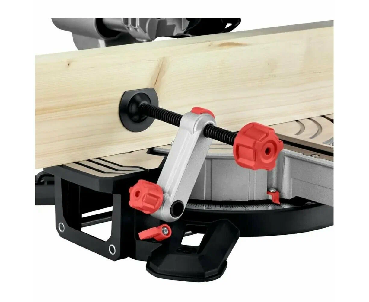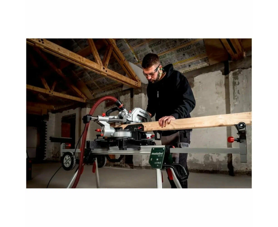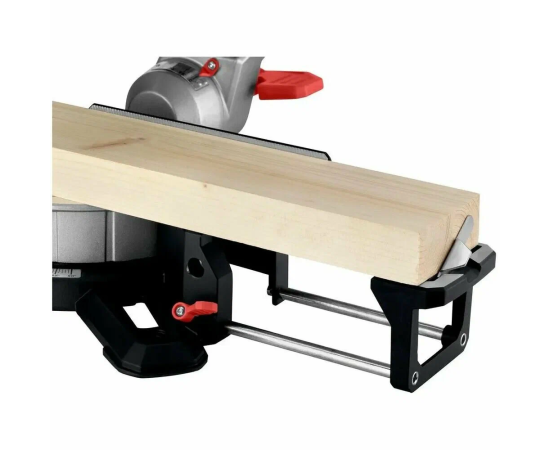 -2 встроенных расширения стола -торцовочный упор -зажим для материала -инструмент для смены пильного диска -намотка кабеля -мешок для сбора опилок