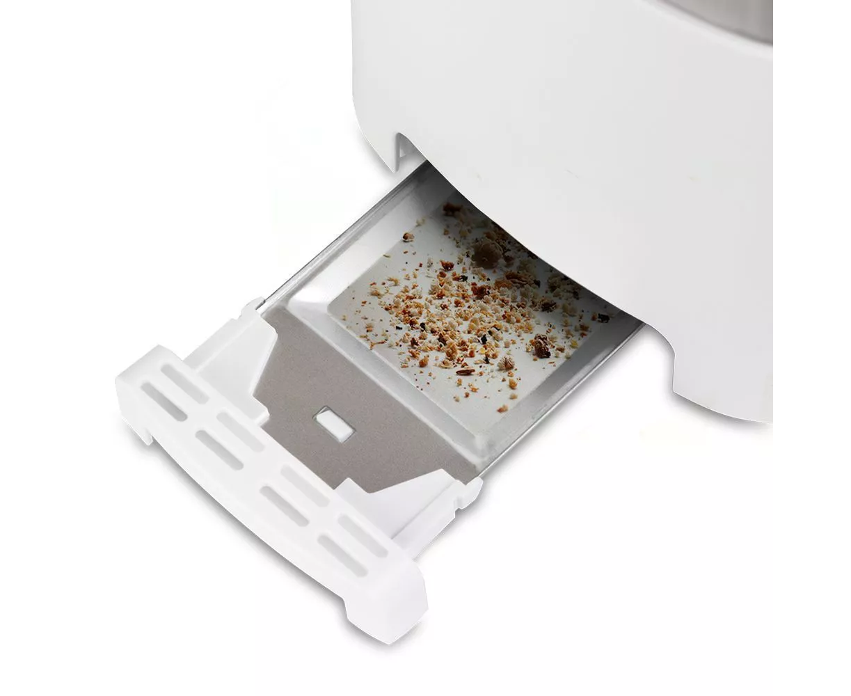 Снизу расположен выдвижной поддон для крошек, поэтому чистить тостер просто и удобно.