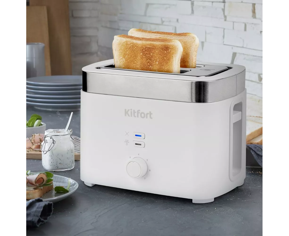 Электрический тостер Kitfort КТ-4025 создан для тех, кто любит полакомиться ароматным и хрустящим поджаренным хлебом. Особый вкус и цвет корочки тостов получаются благодаря карамелизации сахара, содержащегося в муке, при нагреве в процессе приготовления.