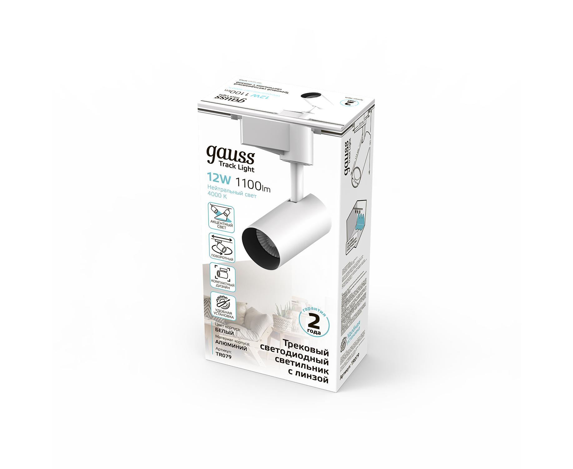 Трековая система GAUSS TR079, 4000К, белый нейтральный, белый