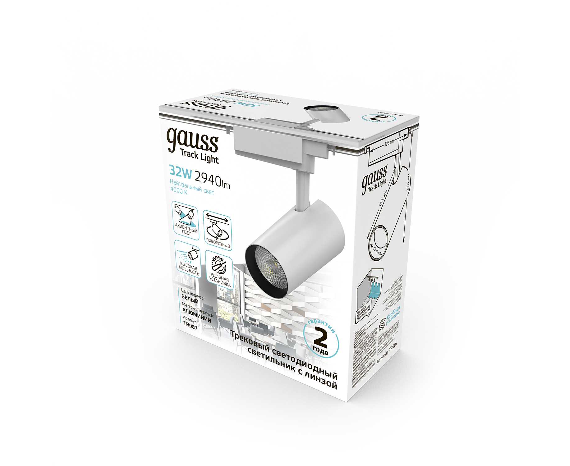 Трековая система GAUSS TR087, 4000К, белый нейтральный, белый