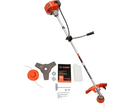 Триммер поддерживает использование как лески, так и ножа, что делает его универсальным инструментом для различных типов растительности. Ручной стартер и полуавтоматическая подача лески упрощают эксплуатацию, а емкость бака в 1.250 литра позволяет работать продолжительное время без дозаправки.