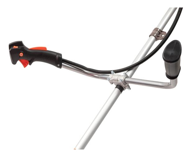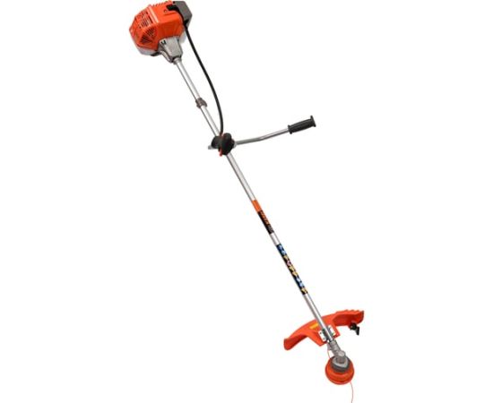 Оснащенный двухтактным двигателем с верхним расположением, он обеспечивает мощность в 0.900 кВт (1.250 л.с.) и объем двигателя 33 см³, что позволяет справляться с различными задачами по скашиванию. Прямой приводной вал и U-образная велосипедная ручка обеспечивают удобство в управлении и маневренность.