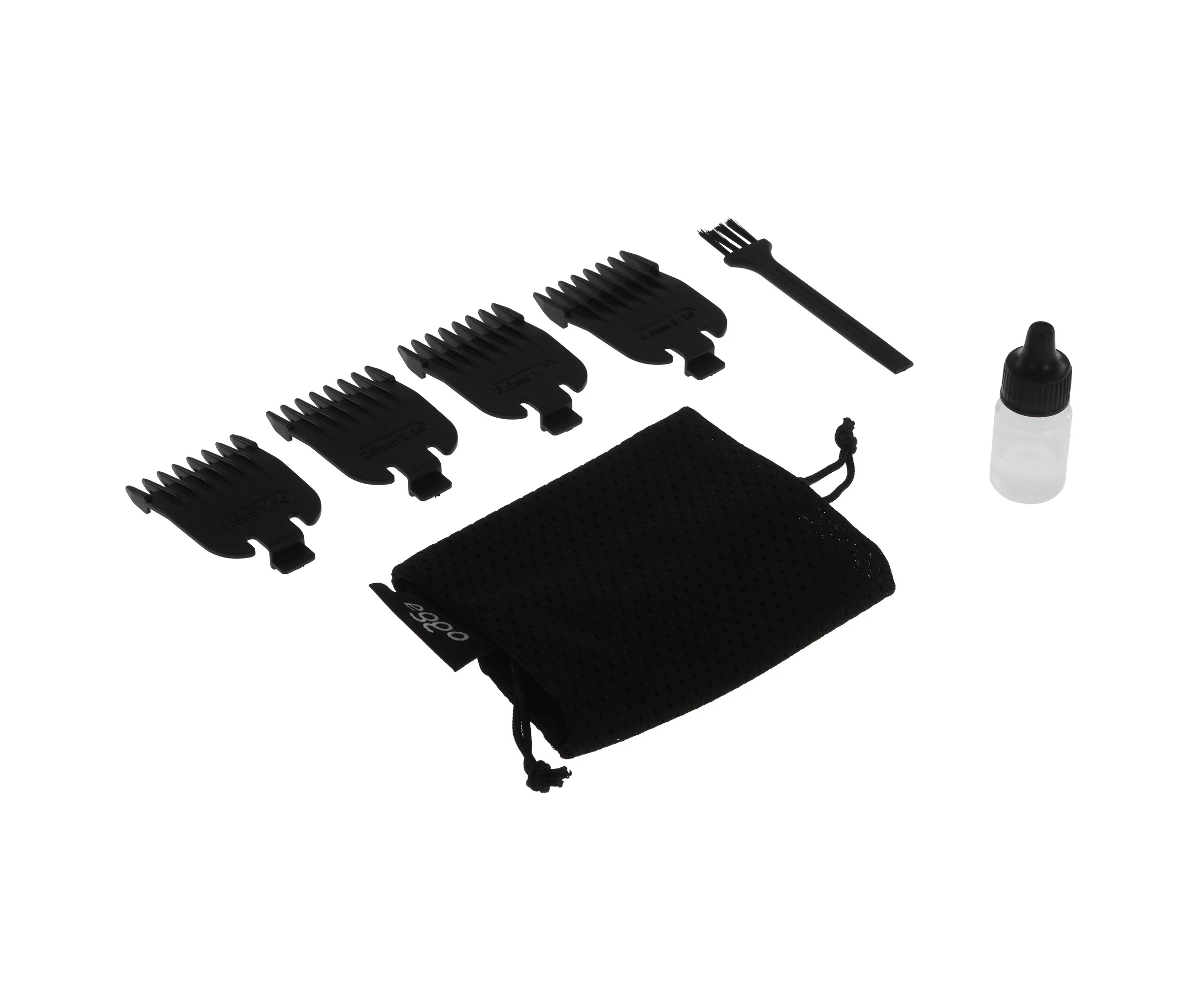 USB кабель, документация, зарядная база, защита лезвий, масло для смазки, щеточка для очистки