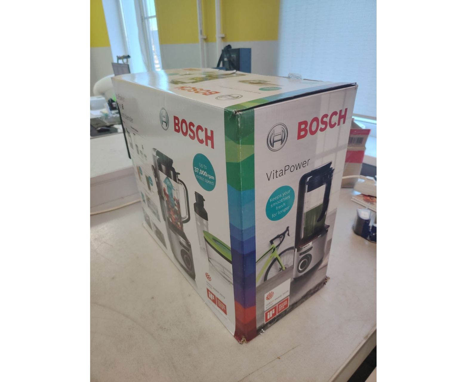 УЦ Блендер Bosch MMBV625M серебристый/черный (плохая упаковка, сколы пластика возле отверстия)