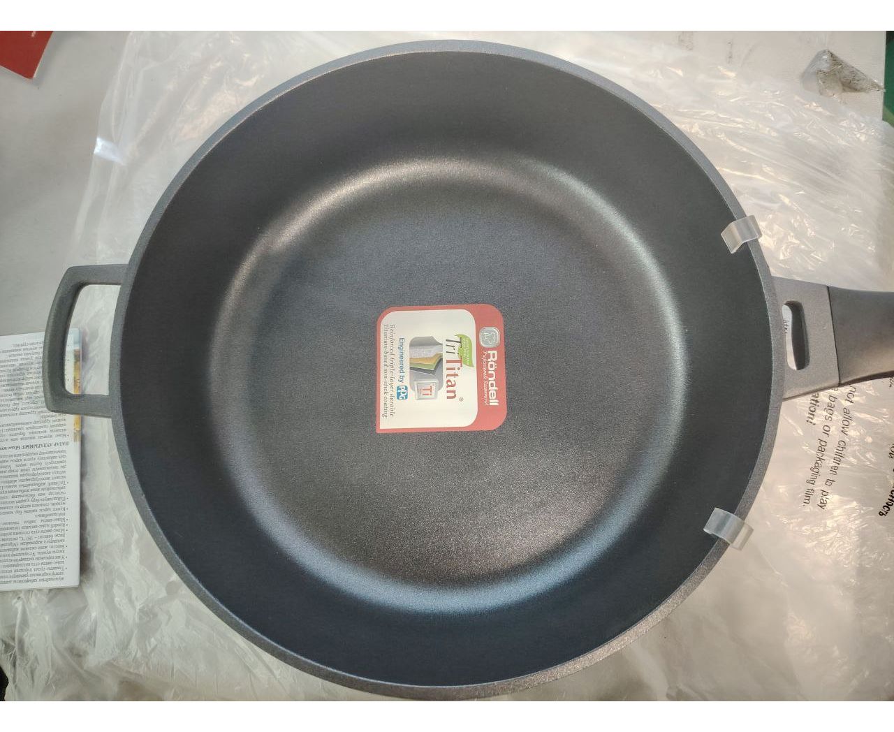 Внутреннее покрытие: TriTitan® - трехслойное, износостойкое антипригарное покрытие на основе титана. Внешнее покрытие: cиликоновый полиэстр, устойчивый к высоким температурам. Аксессуары: прочная бакелитовая ручка анатомической формы.