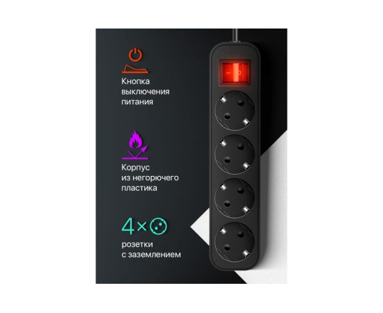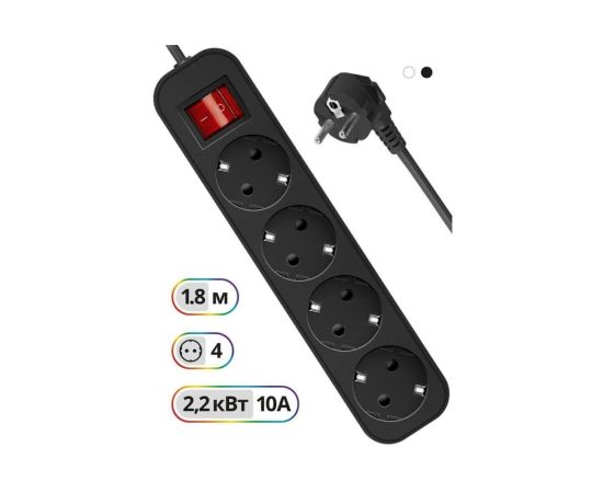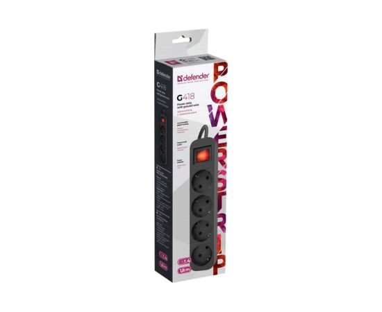 Сетевой фильтр DEFENDER с заземлением G418 1.8 м, 4 розетки (99337)