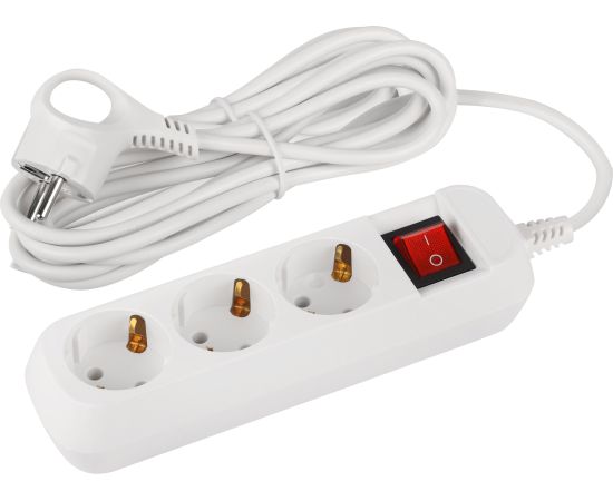 Удлинитель ЭРА UDL-10-350-ES Greenline, 3 розетки, с заземлением, с выключателем, 10А, 5м, белый