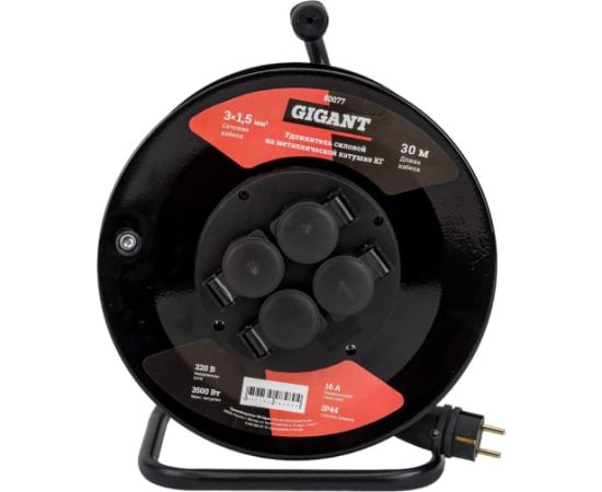Удлинитель Gigant 80077 силовой на металлической катушке КГ 3x1,5 30м