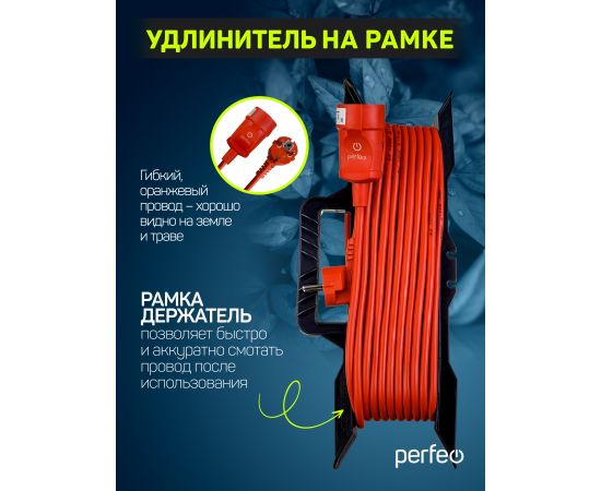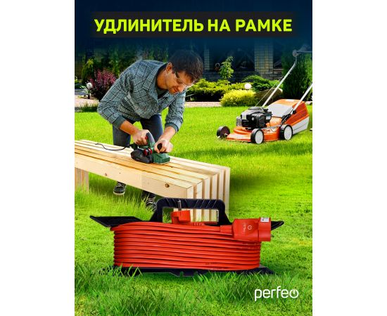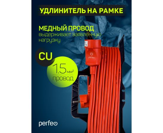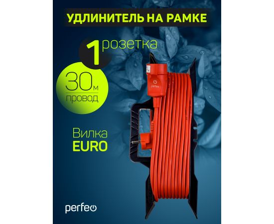 Удлинитель на рамке с заземлением Perfeo "RU POWER" 30м 1гн 16А ПВС 3х1,5 ( УХз16-101) оранжевый.