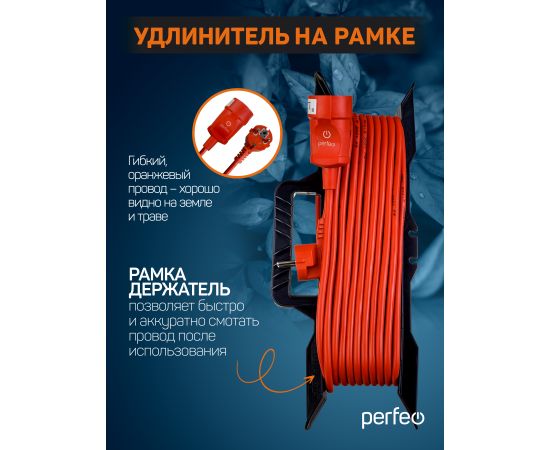 Удлинитель на рамке Perfeo «RuPower» - спасение в ситуациях, когда стандартной длины шнура питания становится недостаточно. н идеально подойдет для подключения ремонтного, строительного и другого оборудования. Гибкий оранжевый провод – хорошо видно на земле и траве. Медный провод обладает большим запасом надежности и меньшей потерей мощности при нагреве.