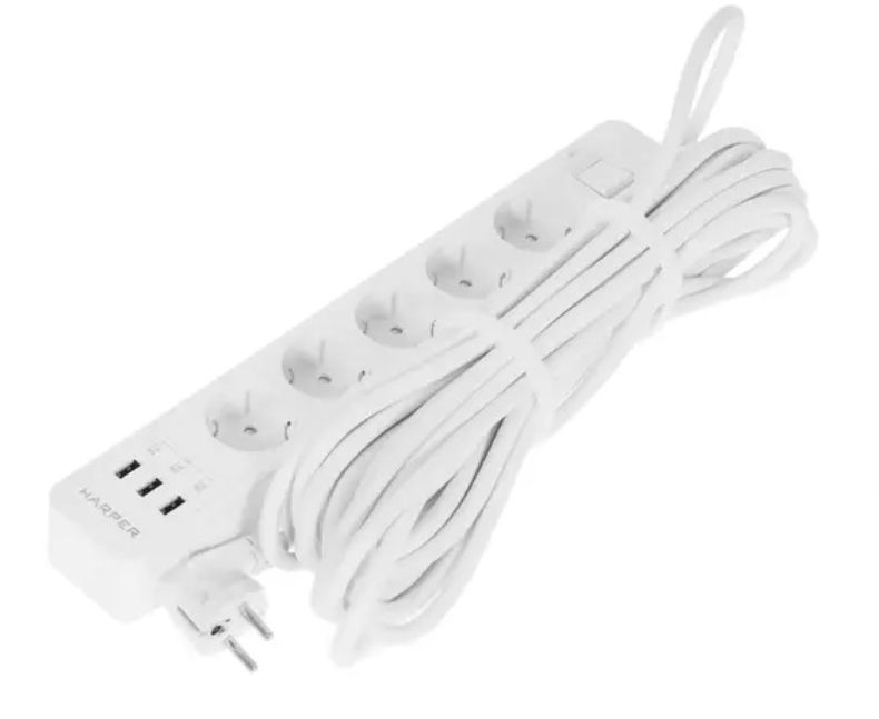 Удлинитель с USB зарядкой HARPER UCH-510 White