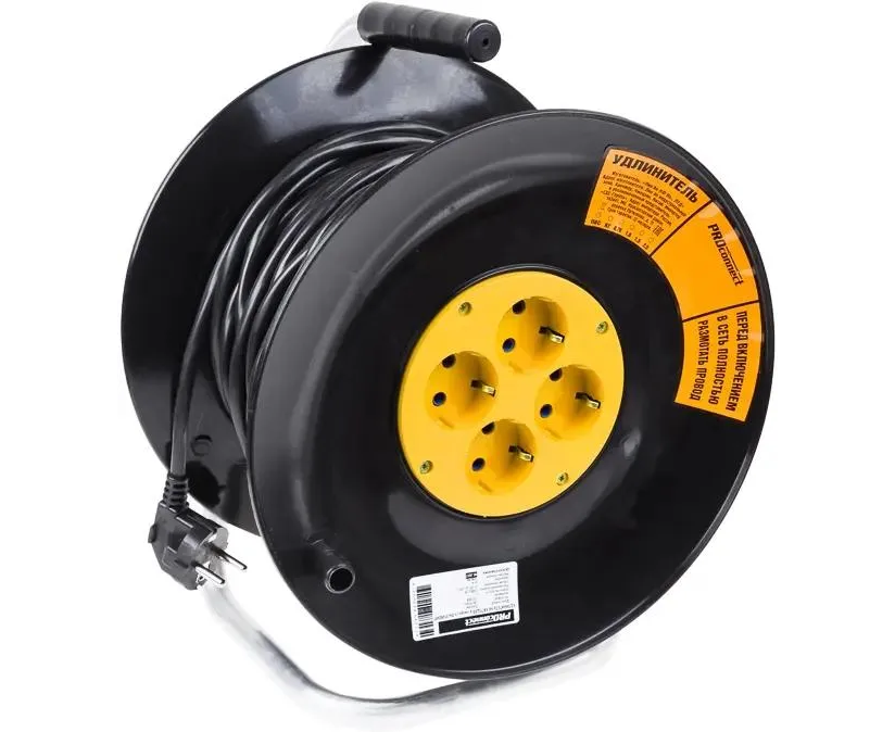 Удлинитель силовой PROconnect Standard 11-7604 3x1.0кв.мм 4розет. 20м ПВС 10A катушка черный