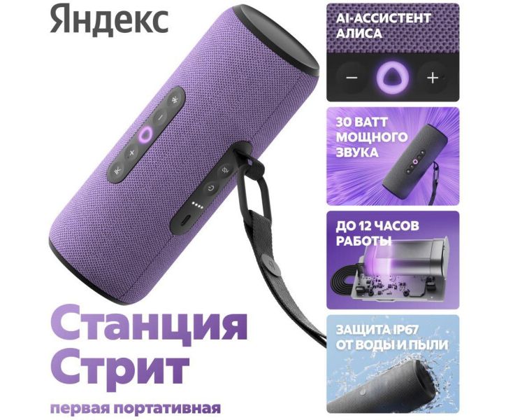 Яндекс Станция Стрит YNDX-00030VIO с Алисой, 30 Вт (фиолетовый)