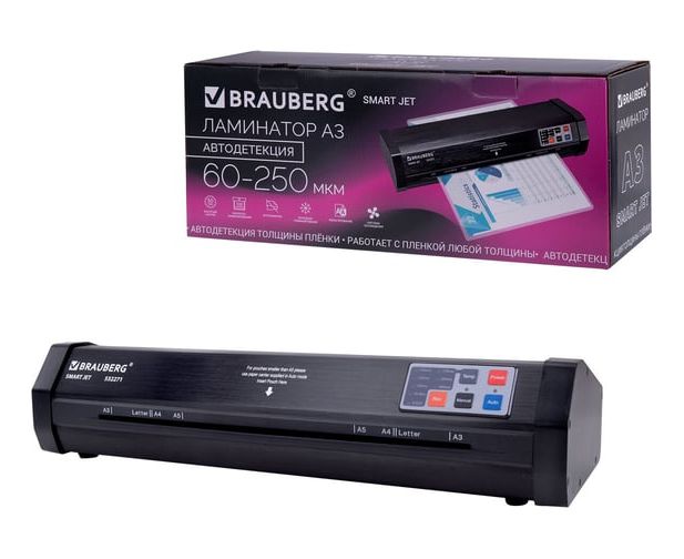 Умный ламинатор BRAUBERG SuperJet 532271 А3, с функцией автодетекции толщины пленки, 60-250мкм, быстрый нагрев 50сек, 100см/мин