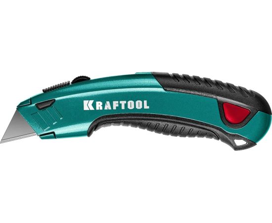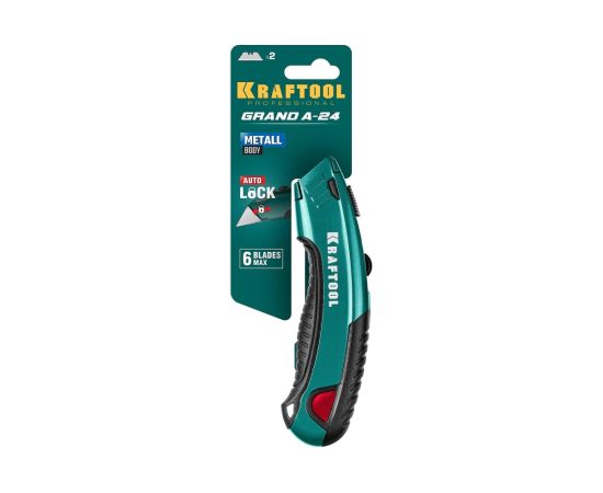 Универсальный нож с автостопом KRAFTOOL Grand-24 2 трап. лезвия А24 09241_z02 - профессиональный нож с трапециевидным лезвием для разрезания различный материалов.