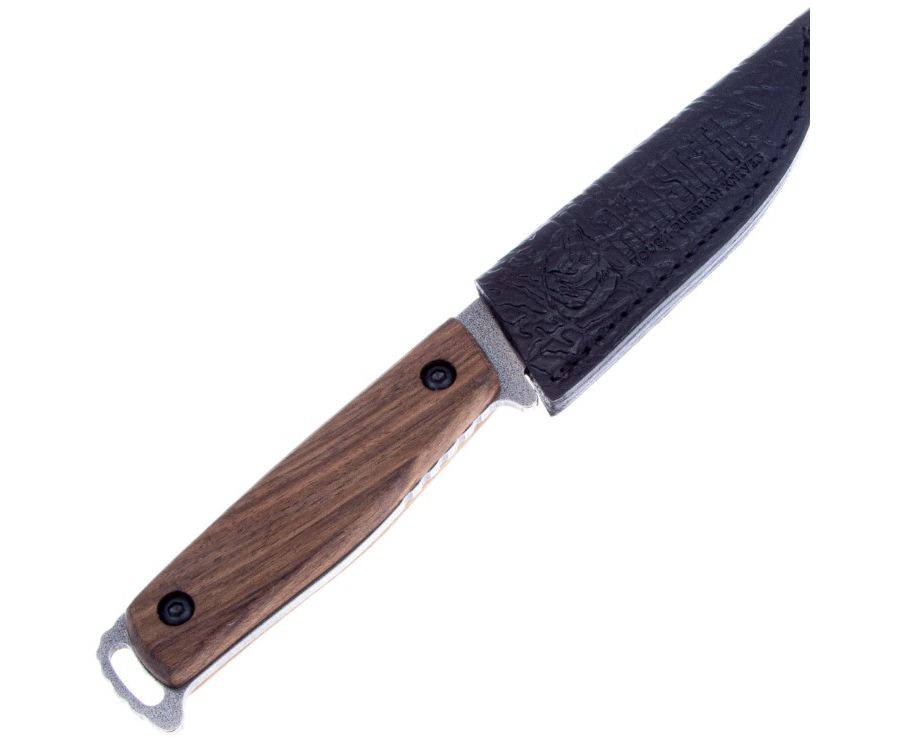Цельнометаллический хвостовик переходит в стеклобой на пяте рукояти. Конструкция ножа позволяет легко повесить на него темляк или карабин.