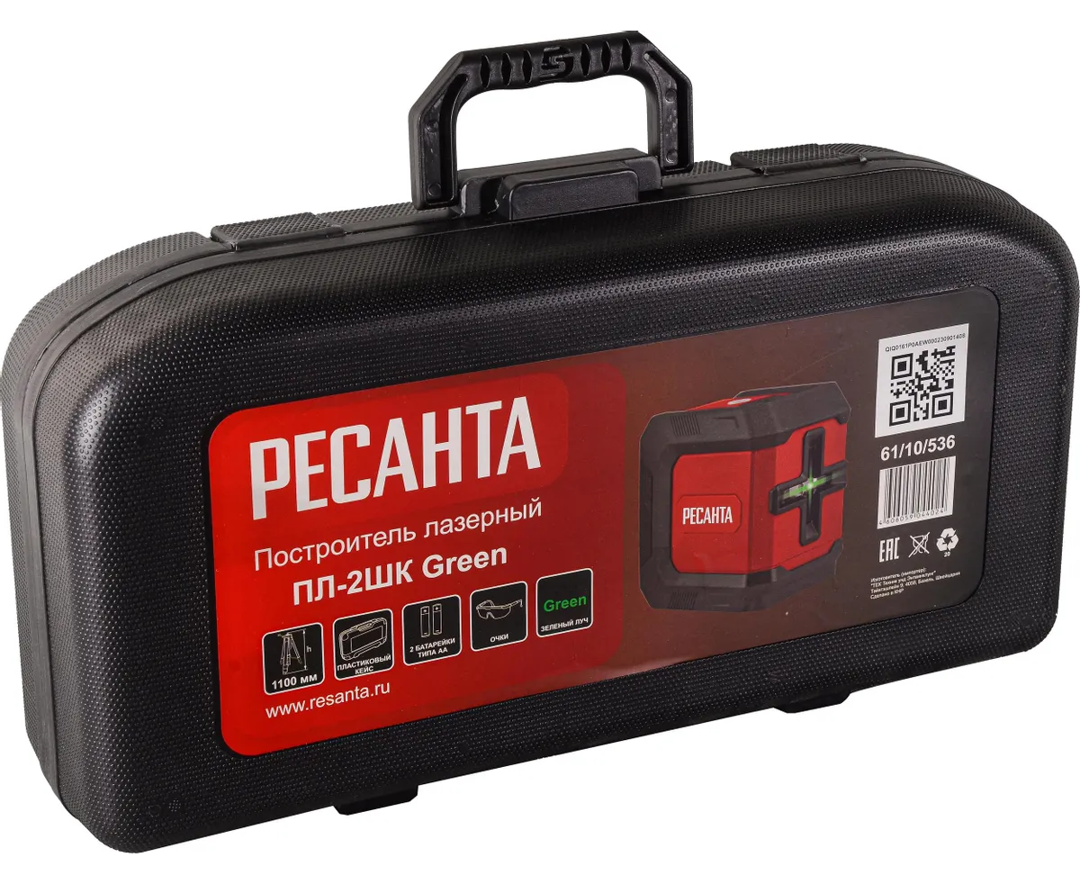 Уровень лазерный Ресанта ПЛ-2ШК Green (61/10/536) 2кл.лаз. 550нм цв.луч. зеленый 2луч.