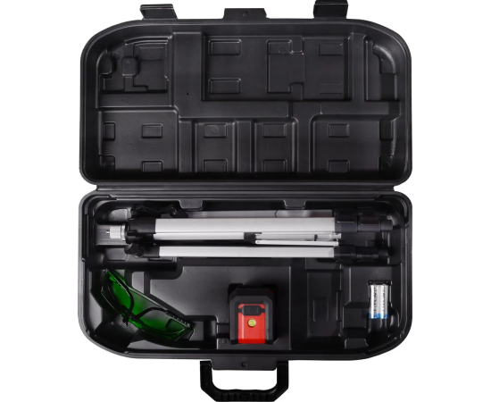 Построитель лазерный – измерительный прибор, который позволяет выполнять измерительные задачи в строительстве: построение горизонтальной и вертикальной плоскостей для выверки и контроля правильности взаимного расположения плоскостей, установки угла в 90 градусов между плоскостями. Прибор позволяет измерять угол между вертикальными плоскостями относительно точки его размещения и контролировать неровность поверхности относительно горизонта и перпендикулярной плоскости.