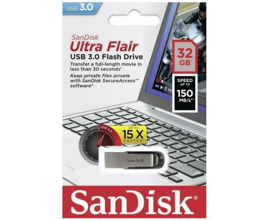 USB 3.0 32GB SanDisk Ultra Flair корпус металл/чёрный