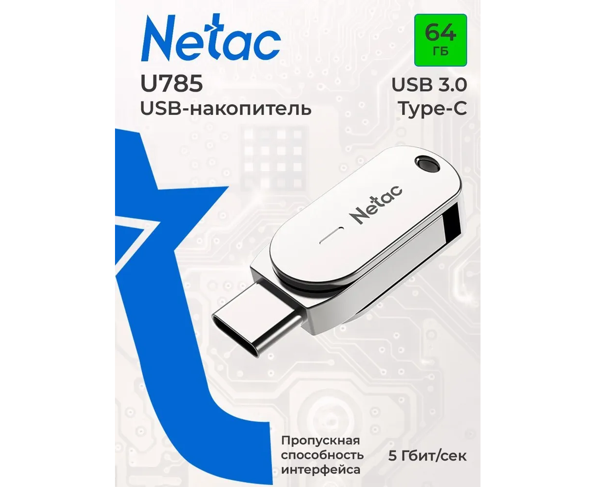 USB 3.0 64GB Netac U785C Dual серебро (USB 3.0/3.1 + Type C)
