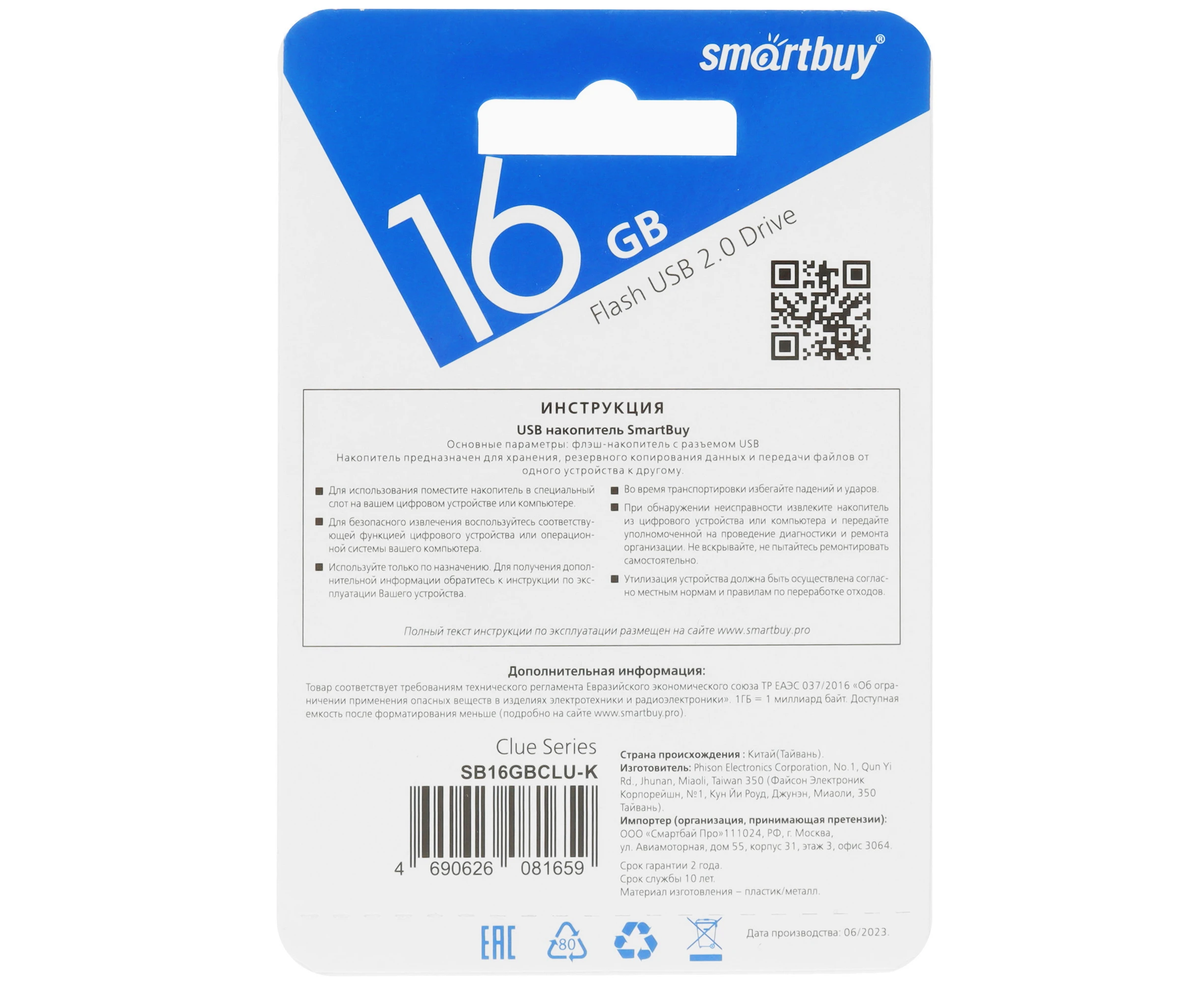 USB-флешка SMARTBUY SB16GBCLU-K Clue 16Gb USB 2.0 черный