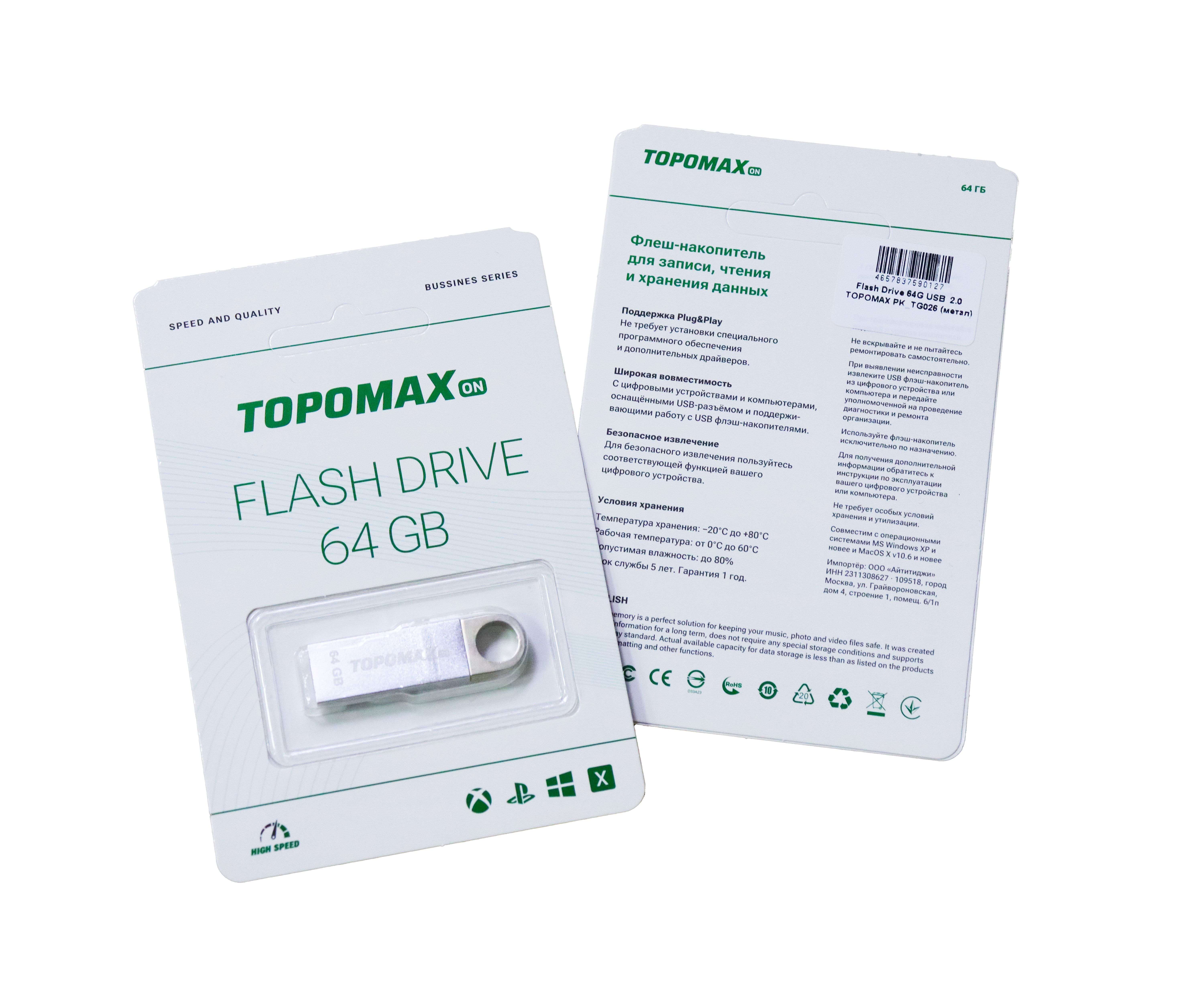 Flash Drive 64G USB 2.0 TOPOMAX PK_TG026 (метал)