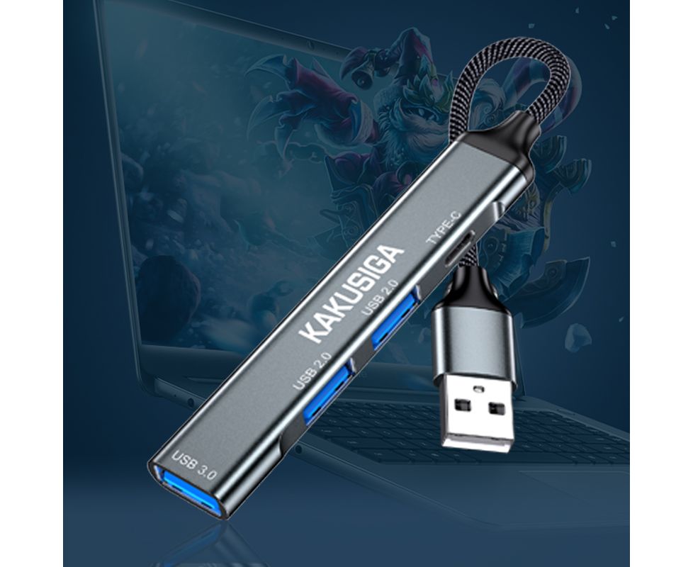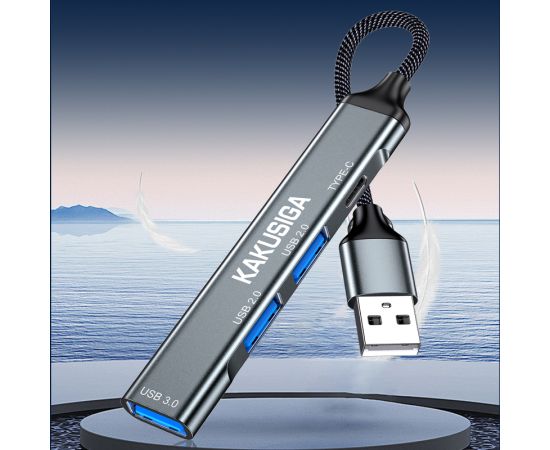 USB HUB KAKUSIGA KSC-1416 4 in 1 на 3 USB + 1 USB-C black