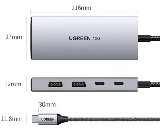 USB Hub UGREEN CM480 30758 USB-C To 2xUSB-A+2xUSB-C HUB without PD space gray