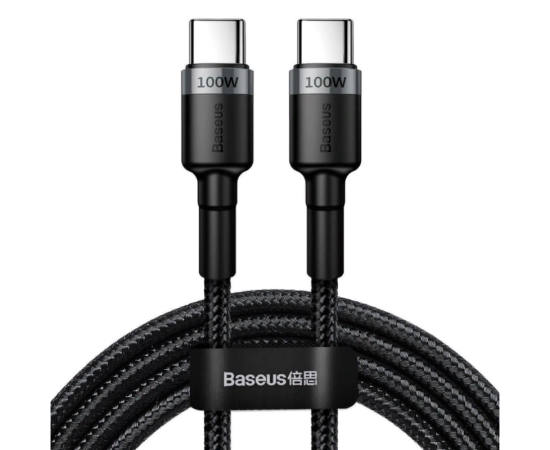 USB-кабель Baseus CATKLF-ALG1, Type-C - Type-C, ткань, 2.0 м, круглый, поддержка Power Delivery, черно-серый, фирменная упаковка