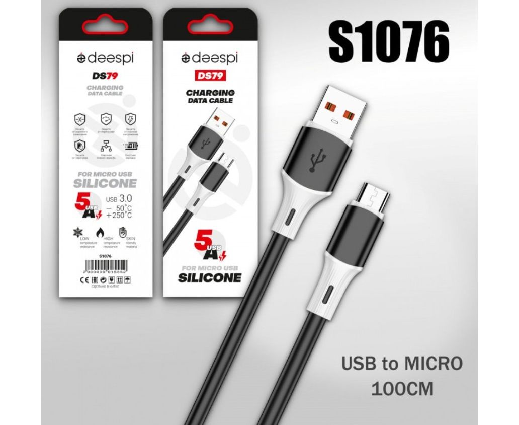 USB-кабель Deespi DS79 Micro 5А силиконовый 1000mm Black 10шт в уп