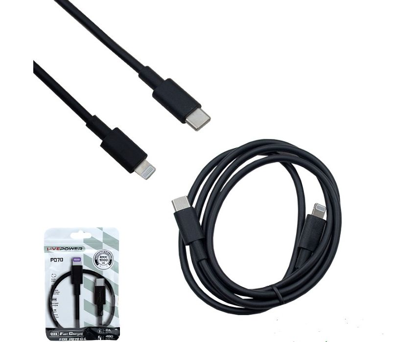 USB-кабель Live-Power PD70 Type-C-L 20W 1000mm Black 20шт в упаковке