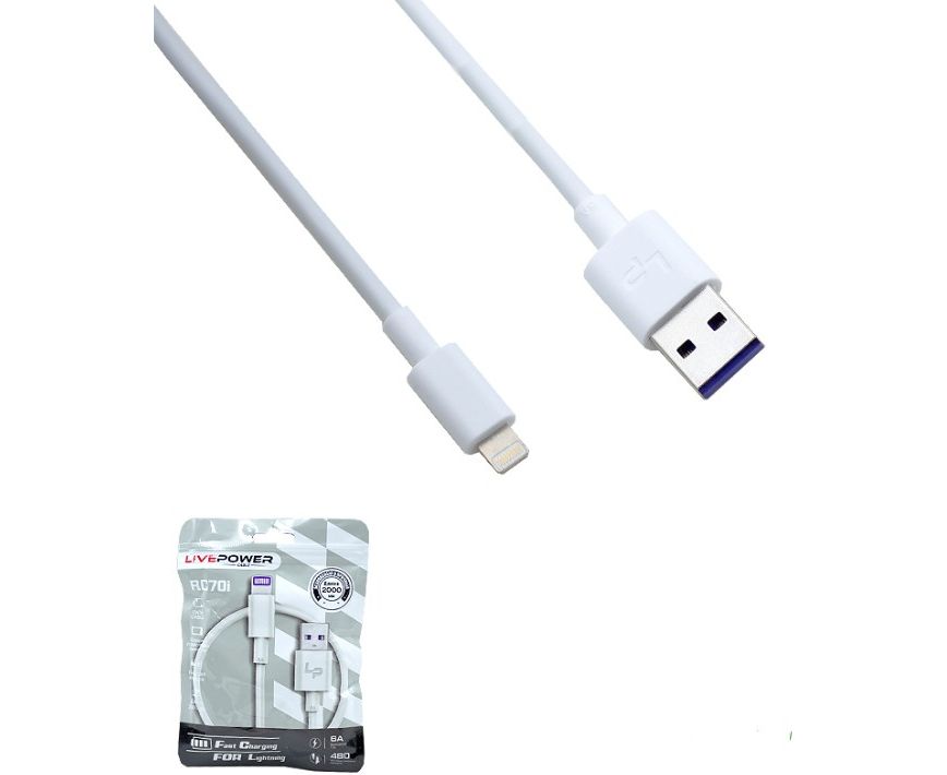 USB-кабель Live-Power RC70 Lightning 6A 1000mm White 20шт в упаковке