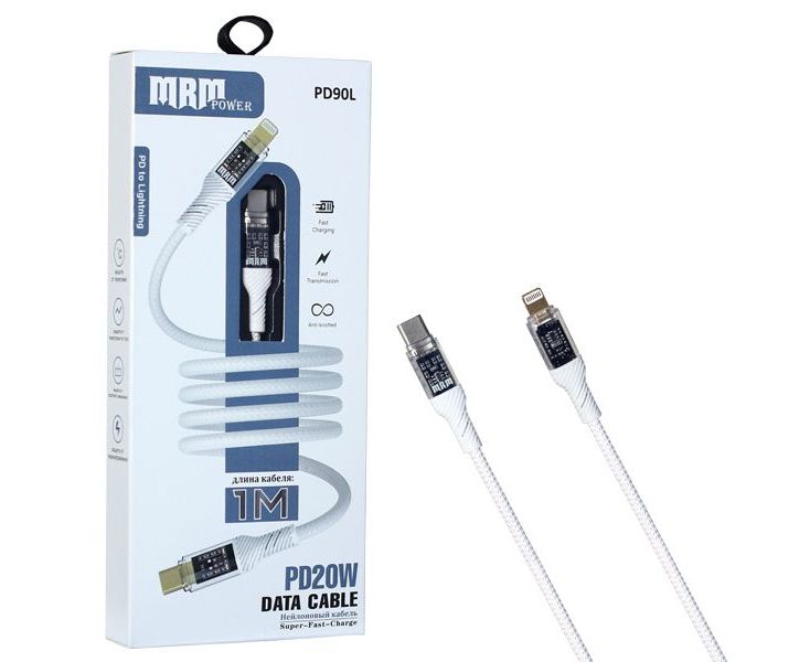 USB-кабель MRM PD90L Type-C-L 3.1A 20W 1000mm Silver 10шт в упаковке