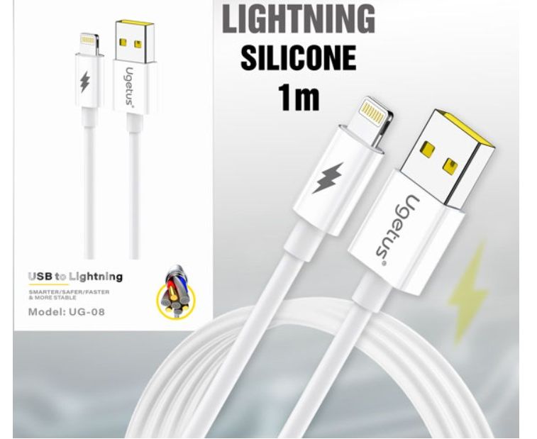 USB-кабель Ugetus UG08 Lightning силиконовый в упаковке 1000mm White (20 шт. в уп.)