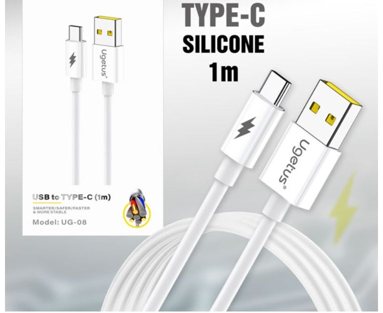 USB-кабель Ugetus UG08 Type-C силиконовый в упаковке 1000mm White (20 шт. в уп.)