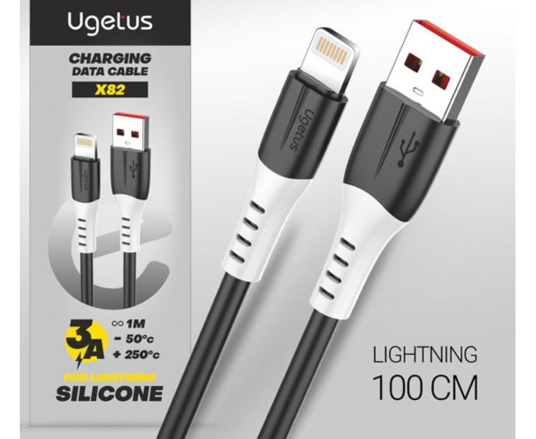 USB-кабель Ugetus X82 Lightning 5A силиконовый 1000mm Black 10шт в уп