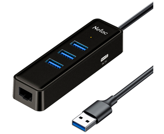 USB-концентратор Netac WF12 (NT08WF12-30BK), USB-A to USB3.0*3+RJ45+TypeC 5V .