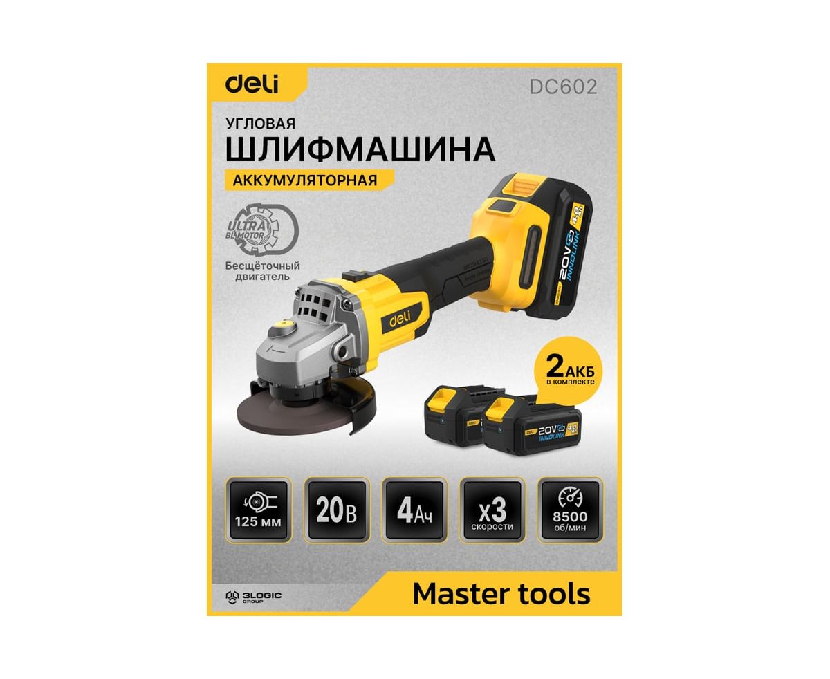 УШМ Deli DC602 2АКБ+ЗУ